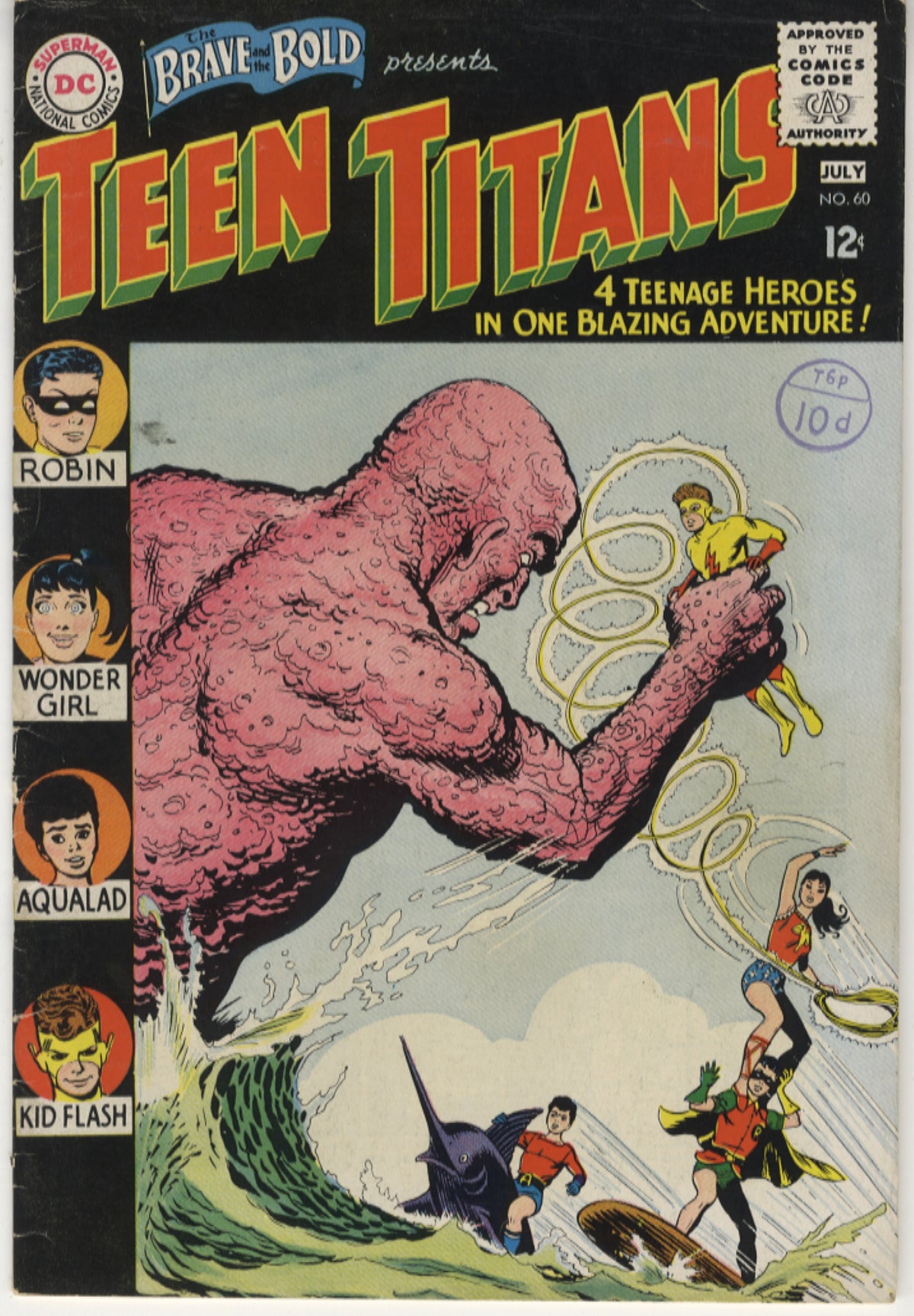 Unrestored cents copy. Second appearance of the Teen Titans. First appearance of Wonder Girl.